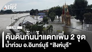 พนังกั้นน้ำอำเภออินทร์บุรี จ.สิงห์บุรี พังทลาย มวลน้ำมหาศาลทะลักเข้าท่วมกว่า 300 ครัวเรือน เจ้าหน้าที่เร่งตั้งแนวป้องกันใหม่ หวั่นน้ำขยายวงเข้าท่วมโรงเรียนและโรงพยาบาลอินทร์บุรี