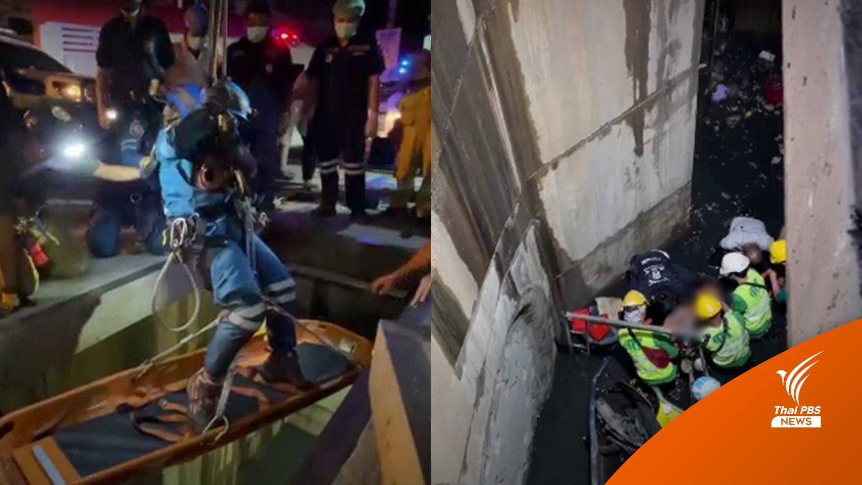 เจ้าหน้าที่ใช้เวลานานกว่า 1 ชั่วโมง จึงนำร่างผู้บาดเจ็บขึ้นมาได้ เนื่องจากบ่อมีความลึกจากผิวถนนถึง 7 เมตร หลังอาสาสมัครและพนักงานบริษัทผู้รับเหมาช่วยกันปฐมพยาบาลก็รีบนำผู้บาดเจ็บส่งโรงพยาบาล เนื่องจากมีอาการเจ็บแน่นที่หน้าอก คาดเกิดจากแรงกระแทกจากการพลัดตกลงไป