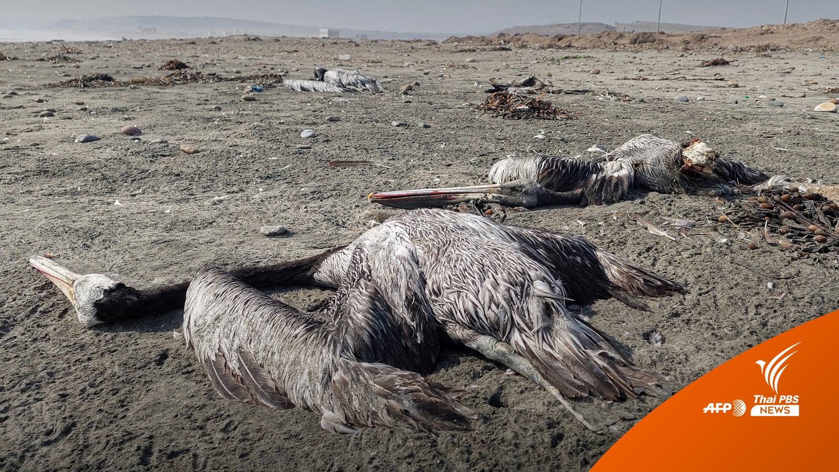 เจ้าหน้าที่จากสำนักงานป่าไม้แห่งชาติและสัตว์ป่าของเปรู เก็บตัวอย่างจากซากสัตว์ที่พบบริเวณชายหาดในกรุงลิมา ซึ่งประกอบไปด้วยนก สิงโตทะเล และนาก โดยสัตว์บางตัวอยู่ในสภาพที่ใกล้ตายจากการติดเชื้อไข้หวัดนกสายพันธุ์