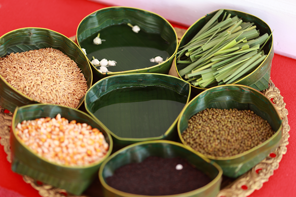 งานพระราชพิธีพืชมงคลจรดพระนังคัลแรกนาขวัญ 2568 ของกิน 7 สิ่ง ที่ตั้งเลี้ยงพระโคนั้น มี ข้าว ข้าวโพด ถั่วเขียว งา เหล้า น้ำ และหญ้า ถ้าพระโคกินสิ่งใดก็จะมีคำทำนายไปตามนั้น คือ