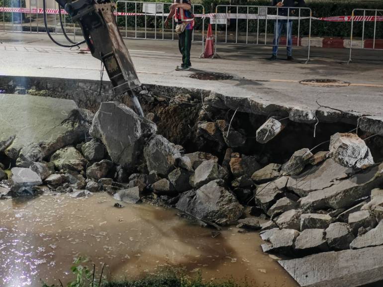 ส่วนที่พบว่ามีโพรงด้านล่าง อาจเพราะมีน้ำที่ชะล้างไปตามท่อระบายน้ำ ซึ่งใต้พื้นถนนมีท่อประปา และระบบท่อร้อยสายไฟของการไฟฟ้าอยู่ด้วย ในเบื้องต้นกำชับให้เร่งหาสาเหตุและซ่อมโดยเร็ว