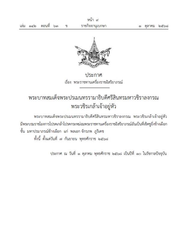 ประกาศ ณ วันที่ 1 ตุลาคม พุทธศักราช 2568 เป็นปีที่ 10 ในรัชกาลปัจจุบัน