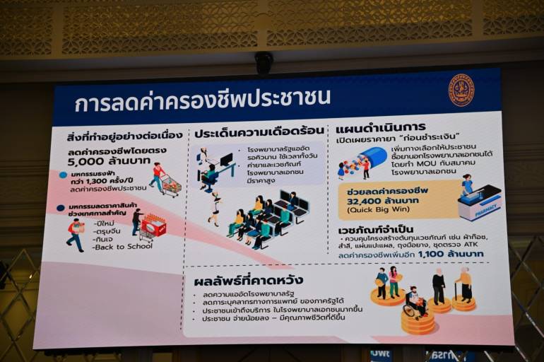 รวมทั้งมหกรรมลดราคาสินค้าในช่วงเทศกาลสำคัญ เช่น ปีใหม่ เทศกาลกินเจ ตรุษจีน และช่วงเปิดภาคเรียน เพื่อช่วยบรรเทาภาระค่าครองชีพให้ครัวเรือน คาดว่าจะลดรายจ่ายประชาชนได้กว่า 5,000 ล้านบาทต่อปี