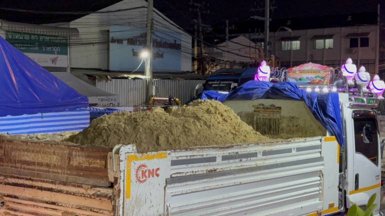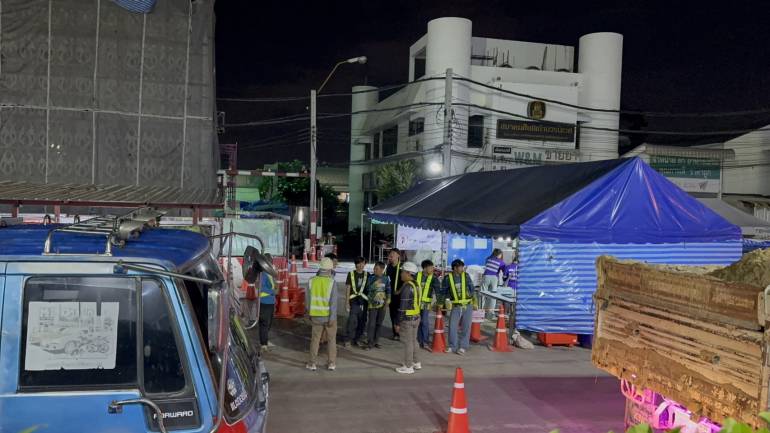 วันนี้ (2 ต.ค.2568) นายกิตติ เอกวัลลภ ผู้ช่วยผู้ว่าการการรถไฟฟ้าขนส่งมวลชนแห่งประเทศไทย (รฟม.) เปิดเผยว่า ภายหลังเมื่อวานนี้ (ต.ค.) ได้เทคอนกรีตประมาณ 100 ลูกบาศก์เมตร เพื่อปิดโพรงที่พบตามจุดต่าง ๆ ภายในหลุม ส่งผลให้การทำงานในวันนี้ ถมทรายลงไปแล้วกว่า 3,500 ลูกบาศก์เมตร หรือ ระดับความสูง 5 เมตร และแผนการทำงานจากนี้จะยังคงถมทรายต่อเนื่องให้สูงขึ้นไปอีก 4 เมตร คาดว่าใช้เวลาประมาณ 3 วัน โดยจะเน้นการถมทรายไปที่ฝั่งโรงพยาบาลวชิรพยาบาล เพื่อปรับผิวจราจรให้พร้อมสำหรับเปิด 2 ช่องทางสัญจรในวันที่ 9 ต.ค.นี้