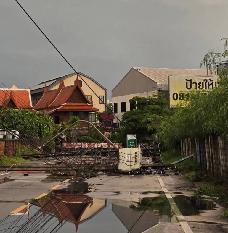 จุดแรกบริเวณ ซอยรามคำแหง 60 แยก 10 แขวงหัวหมาก บางกะปิ กรุงเทพมหานคร ฝนตกลมแรงหลังคาปลิวกระจายต้นไม้หักโค่นทับรถประชาชนเสียหาย ขณะที่ แยก 8 ตรวจสอบต้นไม้หักโค่นและเสาไฟฟ้าล้มทับบ้านเรือนประชาชนเสียหายและรถเสียหาย