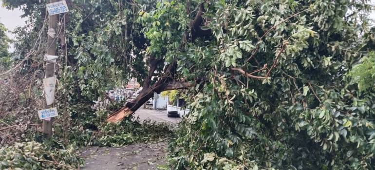 ถนนลาดพร้าวซอย 122 แยก 25 พบเห็นต้นไม้หักโค่นกีดขวางทางสัญจร เบื้องต้น เจ้าหน้าที่สถานีดับเพลิงและกู้ภัยหัวหมากถึงที่เกิดเหตุอยู่ระหว่างเข้าดำเนินการ