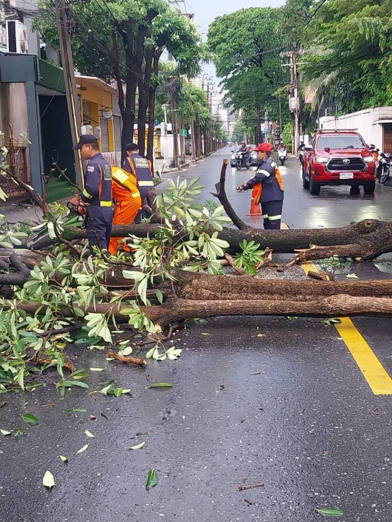 โดยขณะนี้ เจ้าหน้าที่สำนักงานเขตและผู้เกี่ยวข้อง กำลังใช้เครื่องมือตัดต้นไม้ที่ล้มทับถนน และบ้านเรือนประชาชน รวมถึงประชาสัมพันธ์ให้ผู้ไม่เกี่ยวข้องหลีกเลี่ยงเดินทางไปใกล้กับบริเวณที่เกิดเหตุดังกล่าวเนื่องจากพบว่าการจราจรเริ่มติดขัดแล้ว