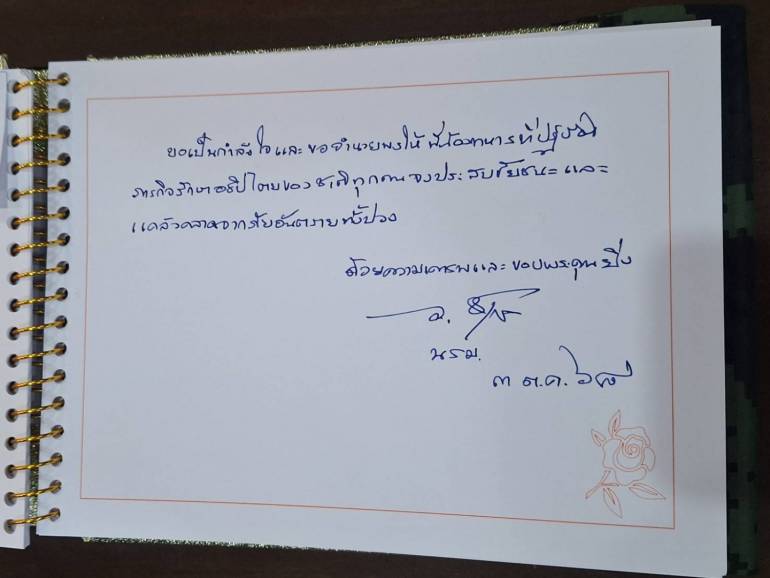 สุดท้ายนายอนุทินลงนามในสมุดเยี่ยมของกองบัญชาการกองกำลังสุรนารีว่า ขอเป็นกำลังใจและขออำนวยพรให้พี่น้องทหารปฏิบัติภารกิจรักษาอธิปไตยของชาติทุกคน จงประสบชัยชนะและแคล้วคลาดจากภัยอันตรายทั้งปวง ด้วยความเคารพและขอบพระคุณยิ่ง