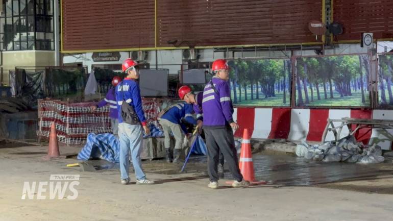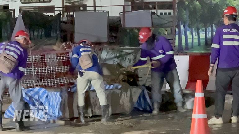 และแม้ว่าจะหยุดใช้เครื่องจักรหนัก แต่เจ้าหน้าที่ก็ได้ใช้กำลังคนในการทำความสะอาดบริเวณพื้นถนนรวมถึง เร่งเคลียร์วัสดุอุปกรณ์ออกจากหลุม เพื่อนำอุปกรณ์ที่ใช้ทำงานออกจากจุดเกิดเหตุ และเตรียมดำเนินการขั้นตอนการสร้างพื้นผิวการจราจรในเช้าวันนี้