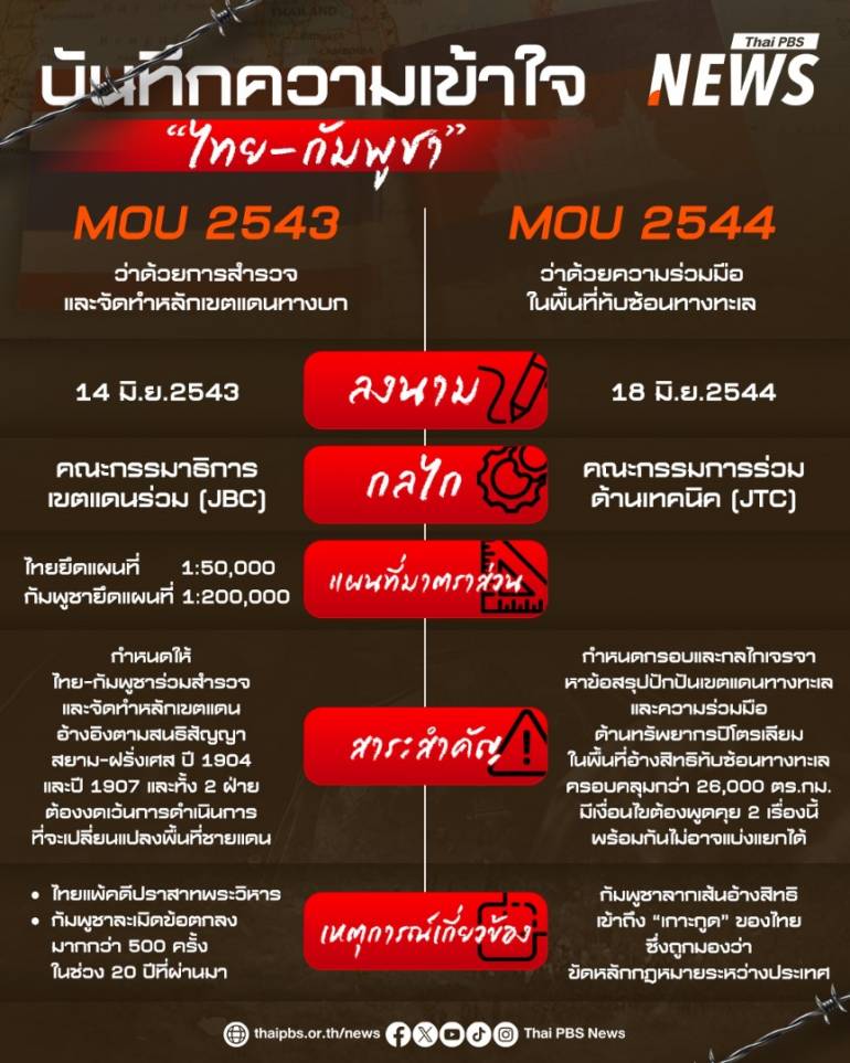 บันทึกความเข้าใจฉบับนี้กำหนดให้ไทยและกัมพูชาร่วมกันสำรวจและจัดทำหลักเขตแดนทางบก ไม่ใช่การกำหนดเขตแดน โดยใช้กลไลคณะกรรมาธิการเขตแดนร่วม (JBC) เป็นเครื่องมือสำคัญ ขับเคลื่อนการจัดทำหลักเขตแดนทางบกผ่านเอกสารสำคัญ 3 ฉบับ คือ อนุสัญญาสยาม-ฝรั่งเศส ฉบับปี ค.ศ.1904, สนธิสัญญาสยาม-ฝรั่งเศส ฉบับปี ค.ศ.1907 และแผนที่ที่จัดทำขึ้นตามผลงานการปักปันของคณะกรรมการปักปันเขตแดนระหว่างอินโดจีนกับสยาม ตามอนุสัญญาฉบับปี ค.ศ.1904 และสนธิสัญญาฉบับปี ค.ศ.1907