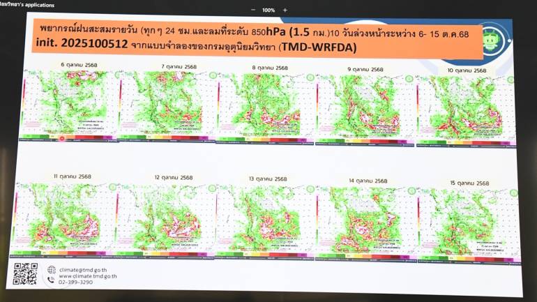วันนี้ (6 ต.ค.2568) นายดนุชา พิชยนันท์ เลขาธิการสำนักงานทรัพยากรน้ำแห่งชาติ (สทนช.) กล่าวภายหลังเป็นประธานการประชุมติดตามสถานการณ์น้ำ ร่วมกับหน่วยงานที่เกี่ยวข้อง ว่า ระยะนี้ประเทศไทยต้องเฝ้าระวังสถานการณ์ฝน เนื่องจากกรมอุตุนิยมวิทยาและสถาบันสารสนเทศทรัพยากรน้ำ (องค์การมหาชน) (สสน.) คาดการณ์ว่า พายุ “แมตโม” จะส่งผลกระทบทางอ้อม