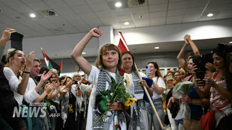 อีกหนึ่งความเคลื่อนไหวเกิดขึ้นที่กรีซ ประชาชนหลายร้อยคนพร้อมใจรวมตัวต้อนรับนักเคลื่อนไหวอย่างคึกคัก ระหว่างที่นักเคลื่อนไหวกลุ่มนี้ ซึ่งรวมถึง Greta Thunberg เดินทางกลับถึงกรุงเอเธนส์ของกรีซ หลังถูกอิสราเอลควบคุมตัวจากกองเรือโกลบอล ซูมุด ที่มุ่งหน้าเข้าไปช่วยเหลือคนในกาซาเมื่อสัปดาห์ที่แล้ว