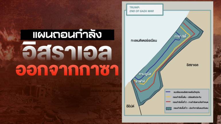 ขั้น 2 ไปแนวสีแดง (ครองร้อยละ 40) และขั้นสุดท้าย คงไว้แนวกันชนรอบกาซา (ครองร้อยละ 15) เพื่อรับประกันความมั่นคงอิสราเอล อย่างไรก็ตาม ความไม่ชัดเจนของกรอบเวลาและสัญญาณจากนายกฯ เบนจามิน เนทันยาฮู ที่จะไม่ถอนเต็มรูปแบบและควบคุมบางพื้นที่ ยังขัดกับจุดยืนฮามาส
