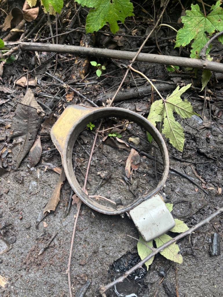 วันที่ 23 ก.ย. กลุ่มพิกัดการเคลื่อนที่ส่งผ่านระบบดาวเทียมปรากฏขึ้นในระบบ ในเวลาต่อมาจึงมีการเข้าตรวจสอบจุดดังกล่าวซึ่งอยู่นอกแนวเขตพื้นที่เขตรักษาพันธุ์สัตว์ป่าห้วยขาแข้ง และไม่ใช่พื้นที่อุทยานแห่งชาติแม่วงก์ พบปลอกคอที่ปลายปิดเป็นวงกลมหล่นที่พื้น หมายความว่าระบบปลดอัตโนมัติยังไม่ได้ทำงาน เมื่อคุ้ยเขี่ยทรายที่ท้องร่องห้วยเล็ก ๆ ได้พบกับเศษชิ้นส่วนกระดูกที่โดนทรายทับถมไว้ด้านล่าง ในขณะเดียวกันก็พบหลุมวงกลมขนาดพอเหมาะกับการฝังดับดักแบบเหยียบอยู่ข้างเคียง