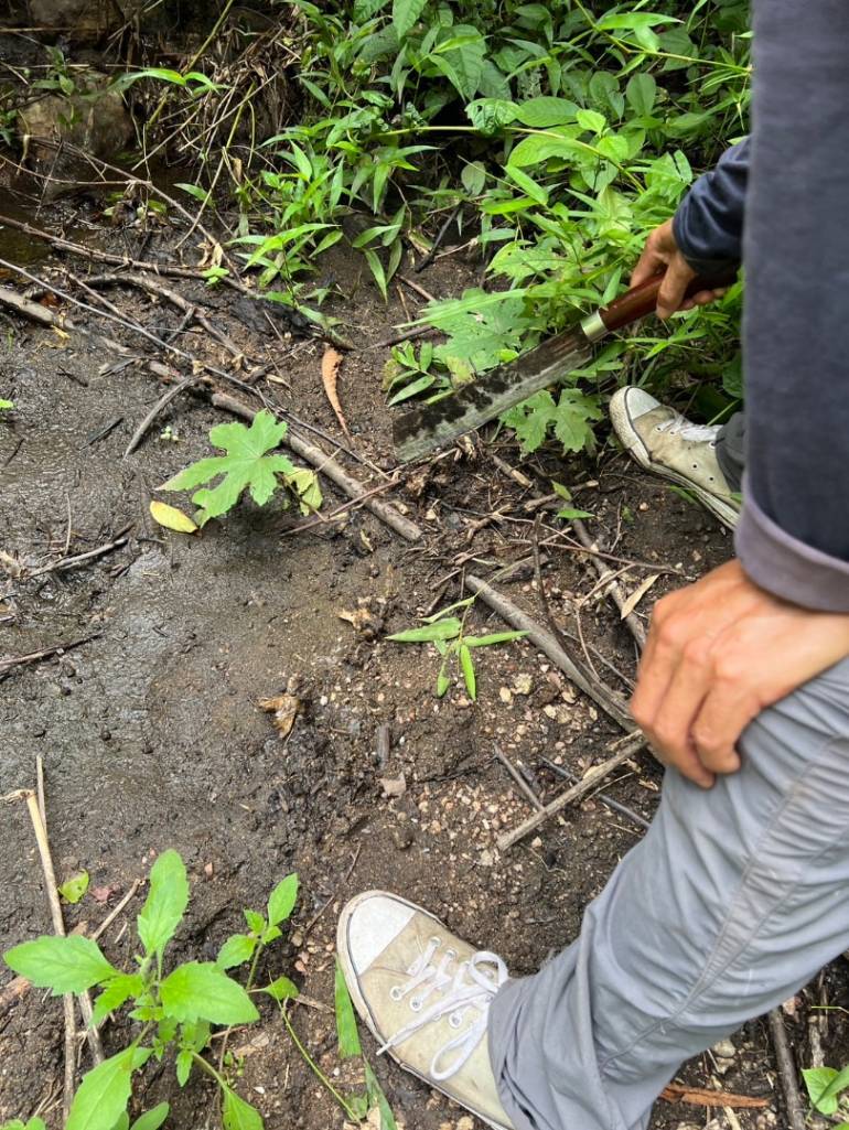 ในพื้นที่ดังกล่าว พบเศษชิ้นส่วนกระดูกที่โดนทรายทับถม รวมถึงมีปลอกคอเส้นที่ใส่ให้เสือโคร่งอยู่ที่พื้นดิน นอกจากนี้ยังพบรอยหลุมกลมกลางร่องห้วย สันนิษฐานว่าเป็นการขุดเพื่อพรางแร้วแบบเหยียบ
