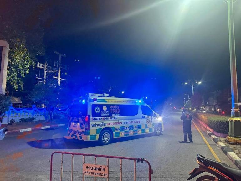 วันนี้ (7 ต.ค.2568) เมื่อเวลาประมาณ 21.30 น.มีเสียงดังคล้ายระเบิด 3 ลูก ที่ศูนย์เยาวชนยะลา ขณะที่มีการจัดงานประเพณีลากพระประจำปี 2568 เบื้องต้นยังไม่มีรายงานผู้ได้รับบาดเจ็บ