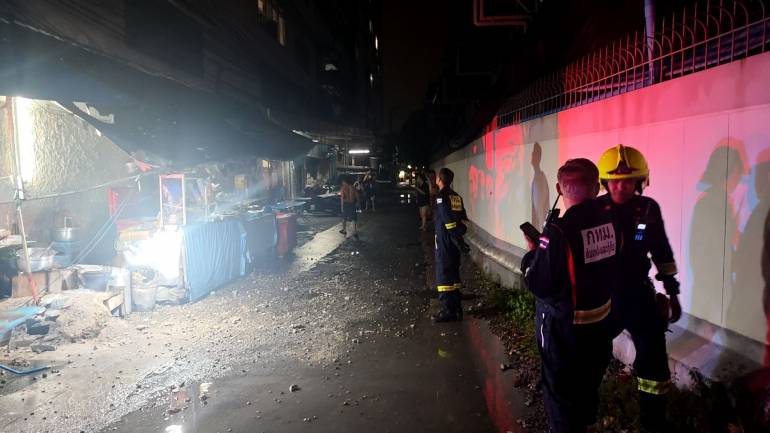 จุดเกิดเหตุพบมีลักษณะเป็นอาคารสูง 7 ชั้น พบกันสาดปูนที่อยู่บริเวณชั้นดาดฟ้าของอาคารได้ร่วงลงมา ทำให้มีผู้บาดเจ็บ 1 คน เป็นพ่อค้าที่ตั้งร้านขายอาหารอยู่ด้านข้างอาคาร ได้รับบาดเจ็บขณะยืนทำอาหารแล้วถูกเศษคอนกรีตที่หล่นลงมากระแทกเข้าที่แขน เจ้าหน้าที่จึงช่วยเหลือปฐมพยาบาลเบื้องต้น ก่อนนำตัวส่งโรงพยาบาลราชวิถี และประสานเจ้าของอาคารให้ดำเนินการติดต่อช่างเข้ามาตรวจสอบอาคาร