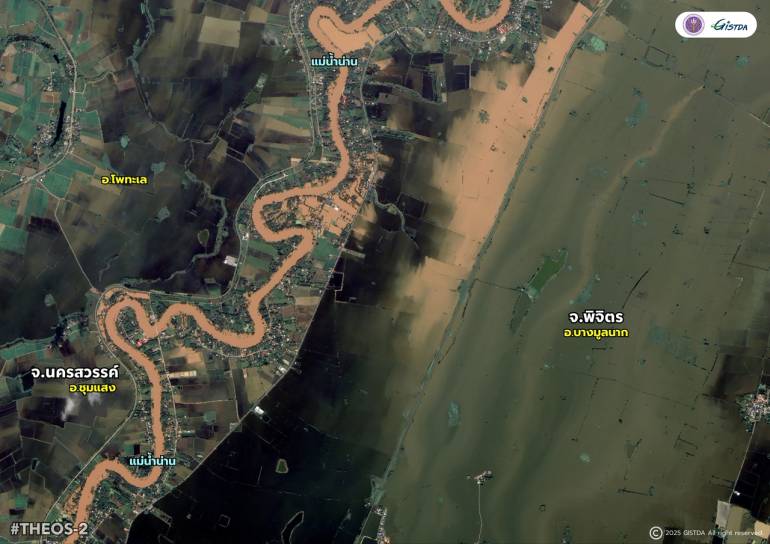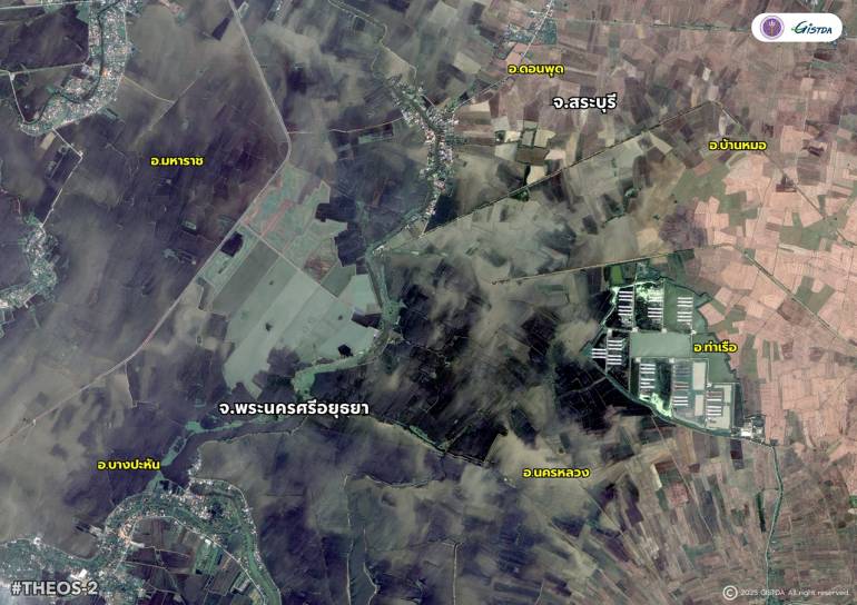 วันนี้ (8 ต.ค.2568) สำนักงานพัฒนาเทคโนโลยีอวกาศและภูมิสารสนเทศ (องค์การมหาชน) หรือ จิสด้า (GISTDA) เผยภาพถ่ายจากดาวเทียมรายละเอียดสูง THEOS-2 ของวันที่ 7 ต.ค.2568 พื้นที่น้ำท่วมขังบางส่วนของ จ.พระนครศรีอยุธยา นครสวรรค์และพิจิตร
