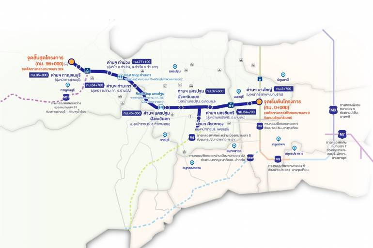 สำหรับการเปิดทดลองให้บริการในครั้งนี้ ถือเป็นครั้งแรกที่เปิดให้ประชาชนใช้บริการครอบคลุมครบทั้ง 8 ด่าน ได้แก่ ด่านบางใหญ่, ด่านนครชัยศรี, ด่านศีรษะทอง, ด่านนครปฐมฝั่งตะวันออก, ด่านนครปฐมฝั่งตะวันตก, ด่านท่าม่วง, ด่านท่ามะกา และด่านกาญจนบุรี