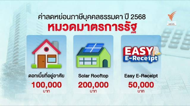 และสุดท้าย สิทธิ์ลดหย่อนจากมาตรการรัฐ ทั้งดอกเบี้ยที่อยู่อาศัย, การติด Solar Rooftop และการใช้จ่ายซื้อสินค้า โครงการ Easy e-receipt หากใช้สิทธิ์ลดหย่อนทุกรายการเต็มเพดาน จะสามารถลดหย่อนได้สูงสุดประมาณ 1.5 ล้านบาทต่อคน