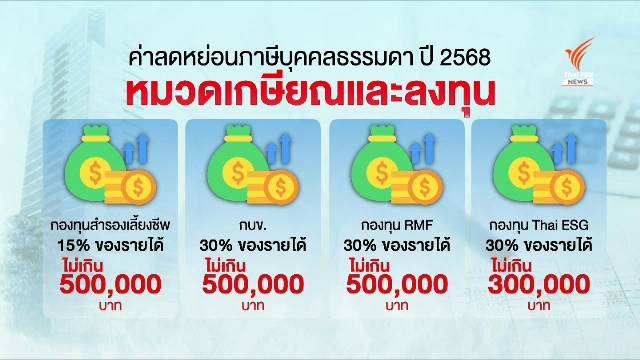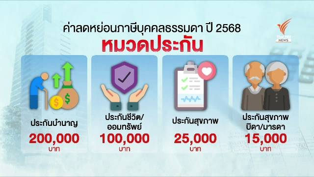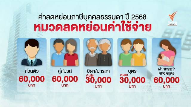 ทีมข่าวไทยพีบีเอส ตรวจสอบสำหรับบุคคลธรรมดาปี 2568 พบว่าสามารถใช้สิทธิ์ลดหย่อนแบ่งได้หลายหมวด อาทิ หมวดลดหย่อนค่าใช้จ่าย เช่น ลดหย่อนค่าใช้จ่ายส่วนตัว คู่สมรส บิดา มารดาและบุตร รวมๆ ถึง 300,000 บาท