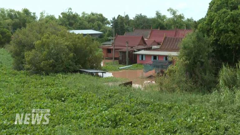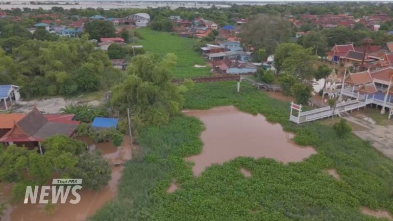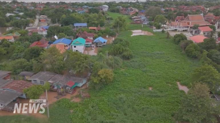 วันที่ 9 ต.ค.2568 ทีมข่าวไทยพีบีเอส ซึ่งไปเกาะติดสถานการณ์น้ำท่วมที่ จ.พระนครศรีอยุธยา ขับรถผ่านสะพานข้ามแม่น้ำน้อย ใน ต.ตาลาน อ.ผักไห่ จ.พระนครศรีอยุธยา มองลงไปด้านล่างแทบจะไม่เห็นผิวน้ำ เห็นเพียงแพผักตบชวาลอยกินวงกว้าง