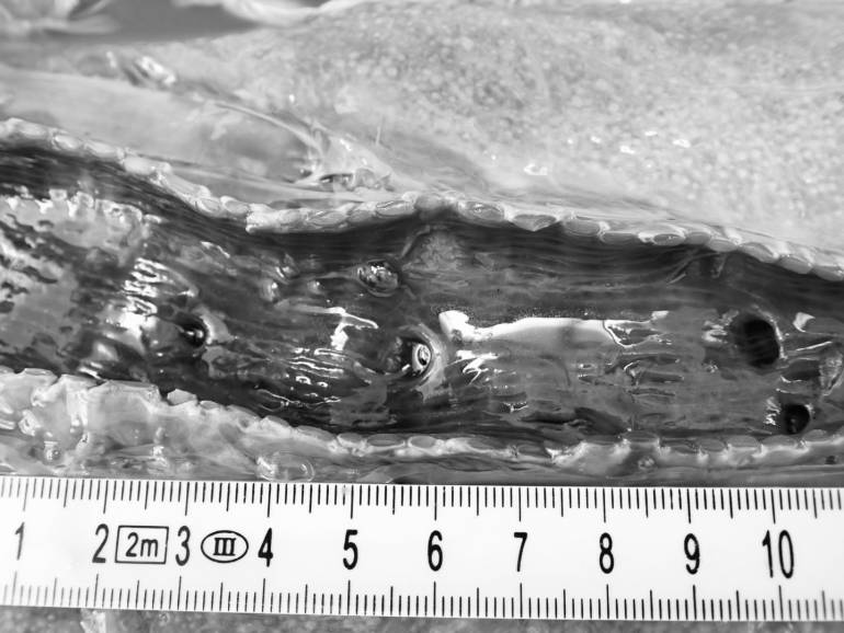 เจ้าหน้าที่จึงได้ร่วมกันขนย้ายซากเพื่อผ่าชันสูตรหาสาเหตุการตาย ณ ศูนย์วิจัยฯ (ศวอบ.) ผลการตรวจสอบพบว่า เป็นพะยูนตัวผู้ โตเต็มวัย ความยาว 222 เซนติเมตร น้ำหนักประมาณ 150 กิโลกรัม สภาพซากเน่ามาก ร่างกายอยู่ในภาวะค่อนข้างผอม (BCS 2/5)