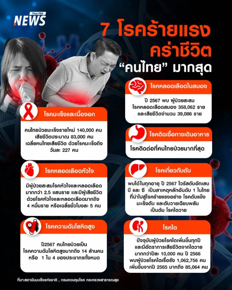 เปิด 7 โรคร้ายแรงคร่าชีวิต "คนไทย" สูงสุด