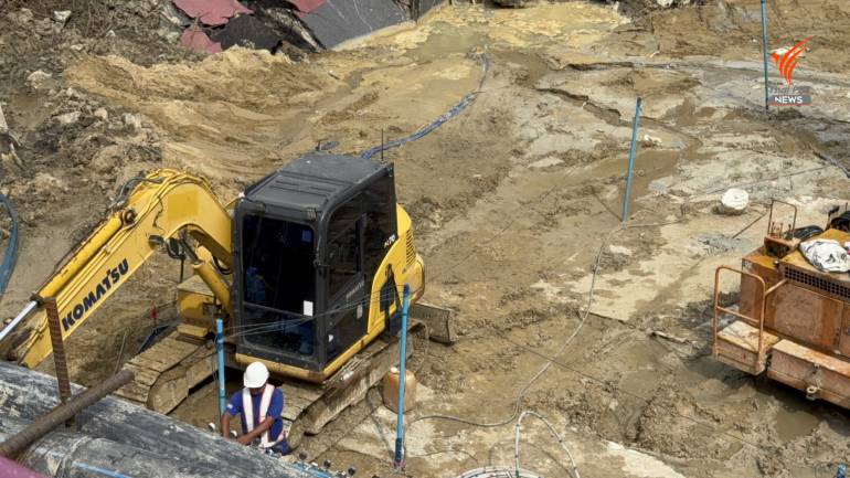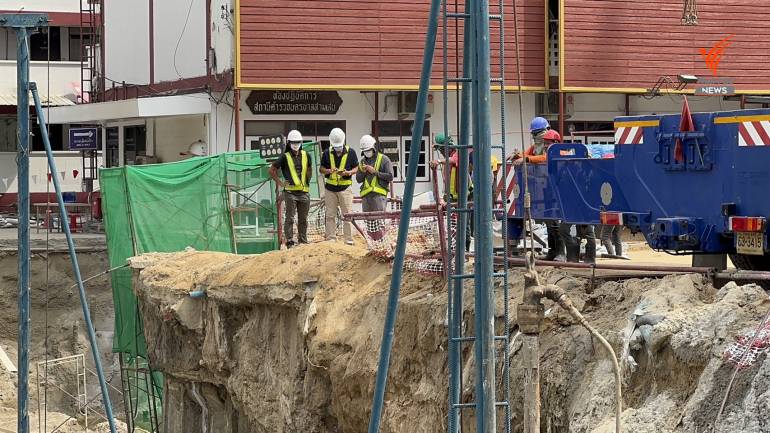 นายปฏิเวช เปิดเผยว่า ล่าสุดผู้รับจ้างอยู่ระหว่างเจาะสำรวจดิน และเติมวัสดุเกร้าท์ติ้ง หรือ Grouting เพื่อเสริมเสถียรภาพของดิน และเพิ่มความแข็งแรงของทรายที่ทำการถม ปัจจุบันดำเนินการขุดเจาะสำรวจดินแล้ว 3 หลุมเจาะ จากเป้าหมาย 8 หลุมเจาะ โดยอยู่ระหว่างขุดเจาะหลุมเจาะที่ 4 และหลุมเจาะที่ 5 เบื้องต้นไม่สามารถตอบได้ว่าจะแล้วเสร็จเมื่อใด เพราะต้องทำงานภายใต้ความปลอดภัย ซึ่งฝนที่ตกถือว่าเป็นอุปสรรคอยู่บ้าง แต่ภาพรวมยังไม่กระทบการทำงานมากนัก