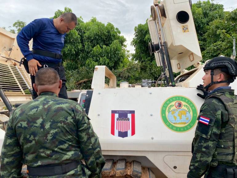 วันนี้( 11 ต.ค. 68) พ.อ.ศิวะ หว่างอากาศ โฆษกศูนย์ปฏิบัติการทุ่นระเบิดแห่งชาติ กล่าวว่า พล.อ.อุกฤษฎ์ บุญตานนท์ ผู้บัญชาการทหารสูงสุด อนุมัติให้ศูนย์ปฏิบัติการทุ่นระเบิดแห่งชาติจัดชุดเครื่องจักรกวาดล้างทุ่นระเบิดเข้าปฏิบัติการกวาดล้างทุ่นระเบิดและสรรพาวุธที่ยังไม่ระเบิดที่ตกค้างจากสงคราม ในพื้นที่ บ.หนองหญ้าแก้ว อ.โคกสูง จ.สระแก้ว ซึ่งเป็นพื้นที่ๆอยู่ในแผนปฏิบัติการเก็บกู้ทุ่นระเบิด ด้านมนุษยธรรมของประเทศไทยตามอนุสัญญาออตตาวา แต่พื้นที่ดังกล่าวถูกทหารกัมพูชาขัดขวางมาโดยตลอด