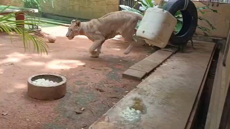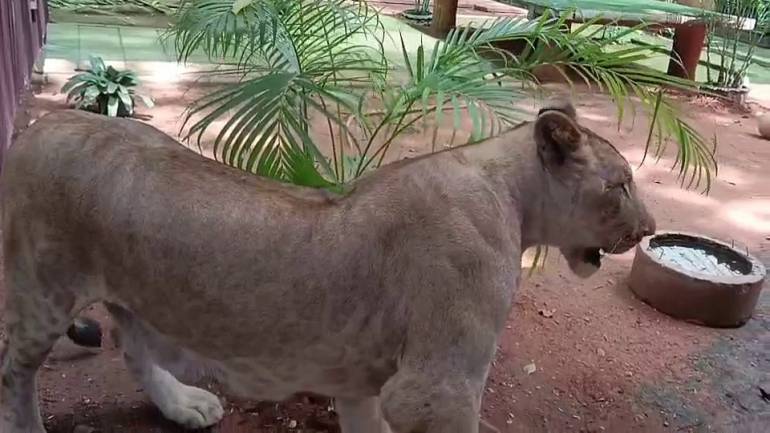 เจ้าหน้าที่ปล่อย “มเหสี” ลูกสิงโตเพศเมียเข้าคอกวันแรก พบปรับตัวได้ดี ไม่เครียดและไม่ตื่นตระหนก นอกจากนี้ยังกินอาหารได้ดีวันละ 4.5 กก.