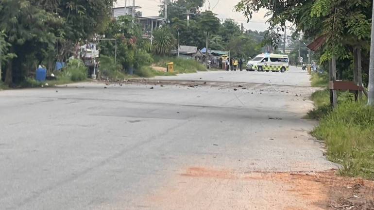 วันนี้ (16 ต.ค.2568) เวลา 08.50 น. ร.ต.อ.ยุทธการ ณ พัทลุง รองสารวัตรสอบสวน สภ.ยี่งอ จ.นราธิวาส รับแจ้งเกิดเหตุระเบิดที่ร้านน้ำชา ต.ยี่งอ ห่างจาก สภ.ยี่งอ ประมาณ 200 เมตร มีผู้ได้รับบาดเจ็บหลายคน จึงรายงานให้ผู้บังคับบัญชาทราบ พร้อมเดินทางร่วมตรวจสอบที่เกิดเหตุกับ พล.ต.ต.ประยงค์ โคตรสาขา ผบก.ภ.จว.นราธิวาส พ.ต.อ.นราวี บินแวอารง ผกก.สภ.ยี่งอ ฃเจ้าหน้าที่ชุดเก็บกู้และทำลายวัตถุระเบิด เจ้าหน้าที่กองพิสูจน์หลักฐาน และเจ้าหน้าที่ที่เกี่ยวข้อง