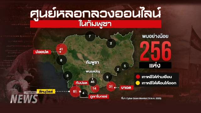 ตำรวจกัมพูชาและเจ้าหน้าที่ท้องถิ่นลงพื้นที่ตรวจสอบ สถานที่ต้องสงสัยว่าเป็นฐานปฏิบัติการของขบวนการหลอกลวงออนไลน์ใน จ.ตาแก้ว ทางตอนใต้ของกรุงพนมเปญ เมื่อวันที่ 16 ต.ค.2568 ซึ่งผู้ว่าการเขตระบุว่า มีทีมสืบสวนจากเกาหลีใต้เข้ามาในจุดนี้ด้วย แต่สิ่งที่พวกเขาพบกลับเป็นสถานที่ว่างเปล่าและไร้ผู้คน