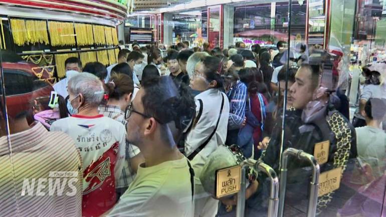 วันนี้ (17 ต.ค.2568) บรรยากาศหน้าห้างทองย่านเยาวราช เนืองแน่นไปด้วยประชาชนที่มาต่อคิว ซื้อ-ขายทองคำ จนทะลักออกมานอกร้าน เจ้าหน้าที่ร้านทองต้องจัดคิวอำนวยความสะดวกลูกค้า หลังราคาทองผันผวนปรับขึ้นตลอดทั้งวัน ซึ่งวันนี้ขยับราคาถึง 31 ครั้ง ราคาทองคำแท่งแตะ 67,200 บาท