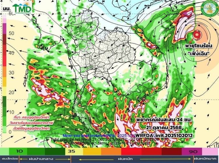 พายุ "เฟิงเฉิน" ไม่เข้าไทย แต่ทำอีสานฝนตก-ใต้ตกหนักมาก 23-26 ต.ค.