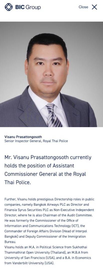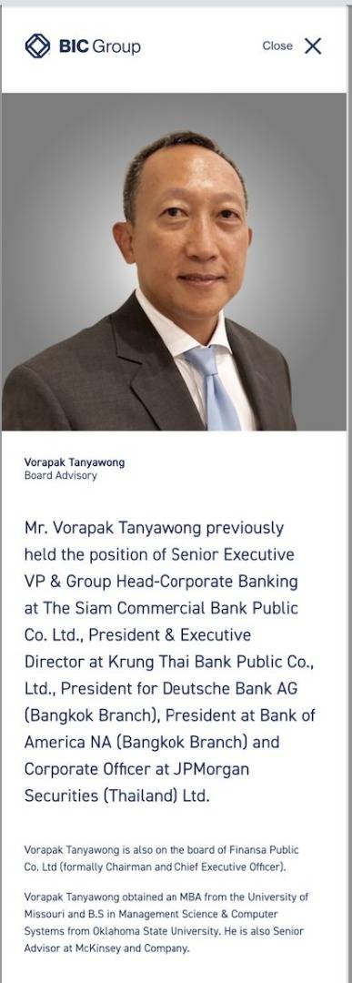 ไม่ใช่ “วรภัค ธันยาวงษ์” ซึ่งเป็นคนไทย เพียงคนเดียว ที่มีชื่อในเว็บไซต์ของ B.I.C Group