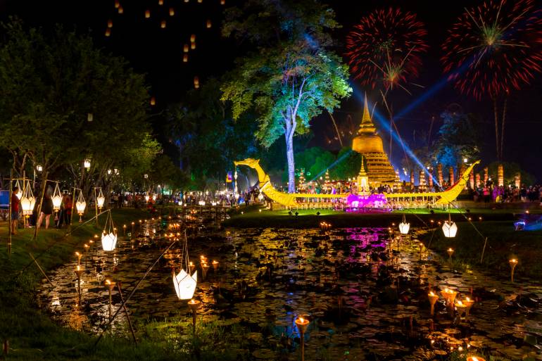 ผู้คนจะมารวมตัวกันริมฝั่งแม่น้ำ คลอง หรือทะเลสาบ สร้างกระทงจากใบกล้วยสดชื่น ประดับดอกไม้หอมกรุ่น เทียนเล่มน้อย และเหรียญดอกบัว ส่องประกายระยิบระยับก่อนลอยลงสู่สายธาร จุดพลุและโคมลอยลอยเด่นดวงกลางฟากฟ้า สร้างภาพฝันอันตระการตา บรรยากาศอบอวลด้วยกลิ่นธูปหอมกรุ่น เสียงหัวเราะร่าเริง และการรำวงรอบกองไฟ ทุกสัมผัสคือการเชื่อมโยงจิตวิญญาณกับสายน้ำศักดิ์สิทธิ์ ฟื้นฟูพลังชีวิตให้เบิกบานดั่งดอกบัวที่เบ่งบานท่ามกลางแสงจันทร์