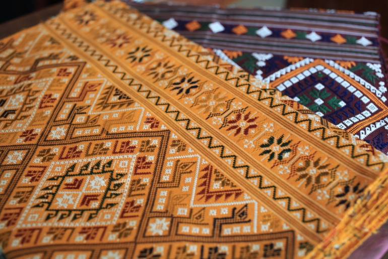 โดยการเลือกยกบางเส้นและข่มบางเส้นเพื่อให้เกิดลวดลายโดยใช้ตะกอลอยและใช้เส้นไหมตีเกลียวเป็นทั้งเส้นยืนและเส้นพุ่ง รวมทั้งใช้เส้นไหมพิเศษทอยกลวดลายอย่างปราณีต เป็นต้น นอกจากนี้ กรมยังส่งเสริมการทำระบบควบคุมคุณภาพสินค้า GI เพื่อรักษามาตรฐานการผลิต ช่วยสร้างความเชื่อมั่นให้กับผู้บริโภคว่าได้รับของดีมีคุณภาพที่มาจากแหล่งผลิตโดยตรง รวมทั้งต่อยอดสร้างมูลค่าเพิ่มผ่านการพัฒนาบรรจุภัณฑ์สินค้า GI และผลักดันแหล่งผลิตให้เป็นแหล่งท่องเที่ยว ตลอดจนการส่งเสริมช่องทางการตลาดสินค้า GI ทั้งในและต่างประเทศ เช่น การจัดงาน GI Market การจำหน่ายสินค้าในห้างสรรพสินค้าชั้นนำและแพลตฟอร์มออนไลน์ พร้อมสร้างการรับรู้สินค้า GIในต่างประเทศ โดยนำผ้าไหมยกดอกลำพูนและผ้าตีนจกแม่แจ่ม (เชียงใหม่) มาออกแบบชุดสวมใส่ให้กับประติมากรรมแมนเนแกน พิส ซึ่งเป็นรูปปั้นเด็กสัญลักษณ์ประจำกรุงบรัสเซลส์ ประเทศเบลเยียม เป็นต้น