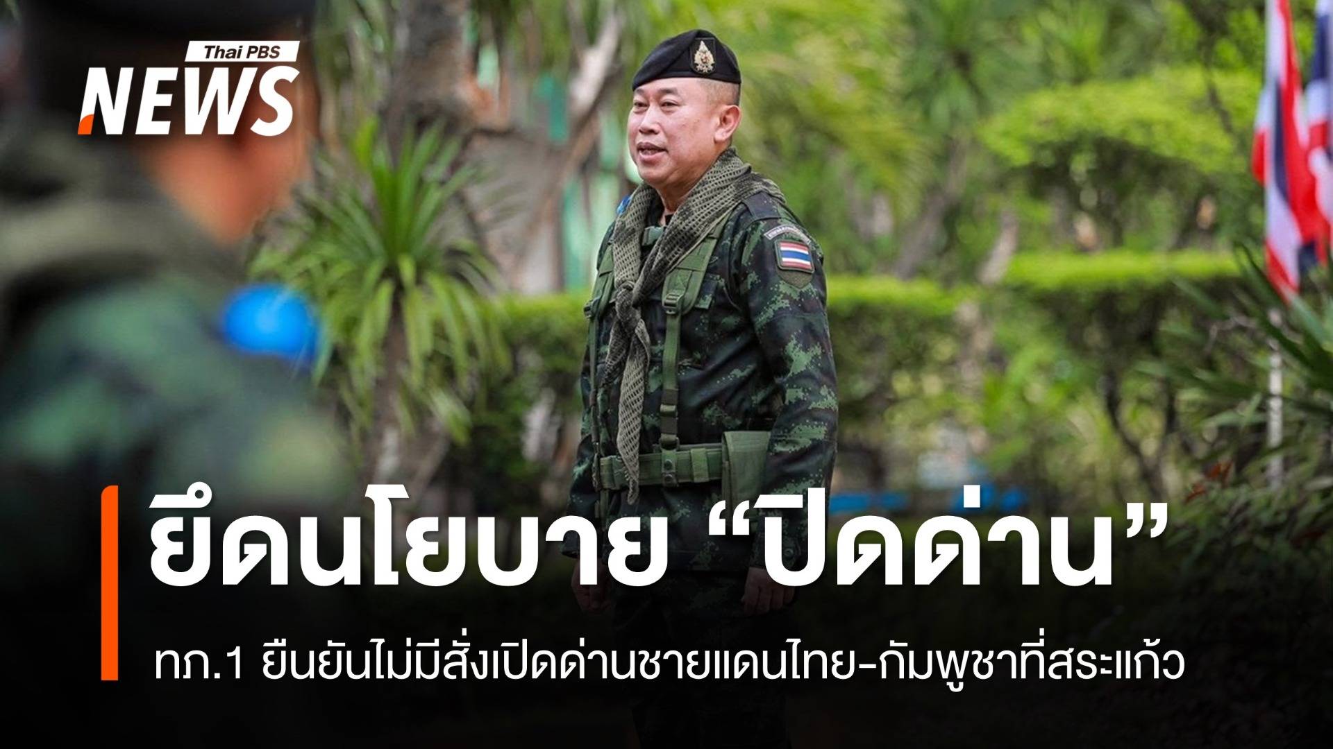 กองทัพภาคที่ 1 ยืนยันว่า ไม่มีการสั่งการให้เปิดด่านชายแดนไทย-กัมพูชา ในความรับผิดชอบของกองกำลังบูรพา พื้นที่ จ.สระแก้ว แต่อย่างใด โดยยังคงยึดถือปฏิบัติตามนโยบายปิดด่านชายแดนไทย-กัมพูชาในพื้นที่รับผิดชอบเช่นเดิม