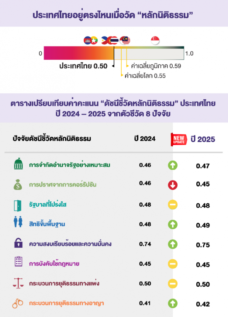 คะแนน Rule of Law Index ประเทศไทย ปี 2025 แยกตามตัวชี้วัด 8 ปัจจัย