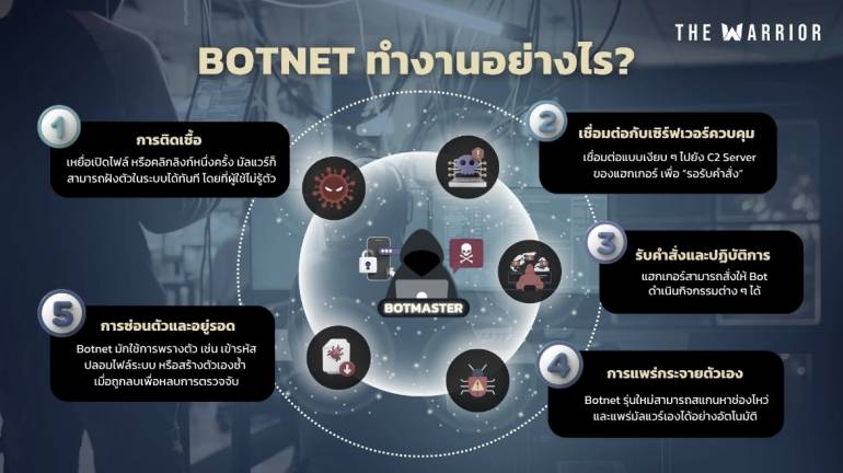 อ้างอิง : บทความทางทหาร “ Scammer สู่ Botnet” กลไกเบื้องหลังอาชญากรรมไซเบอร์ยุคดิจิทัล