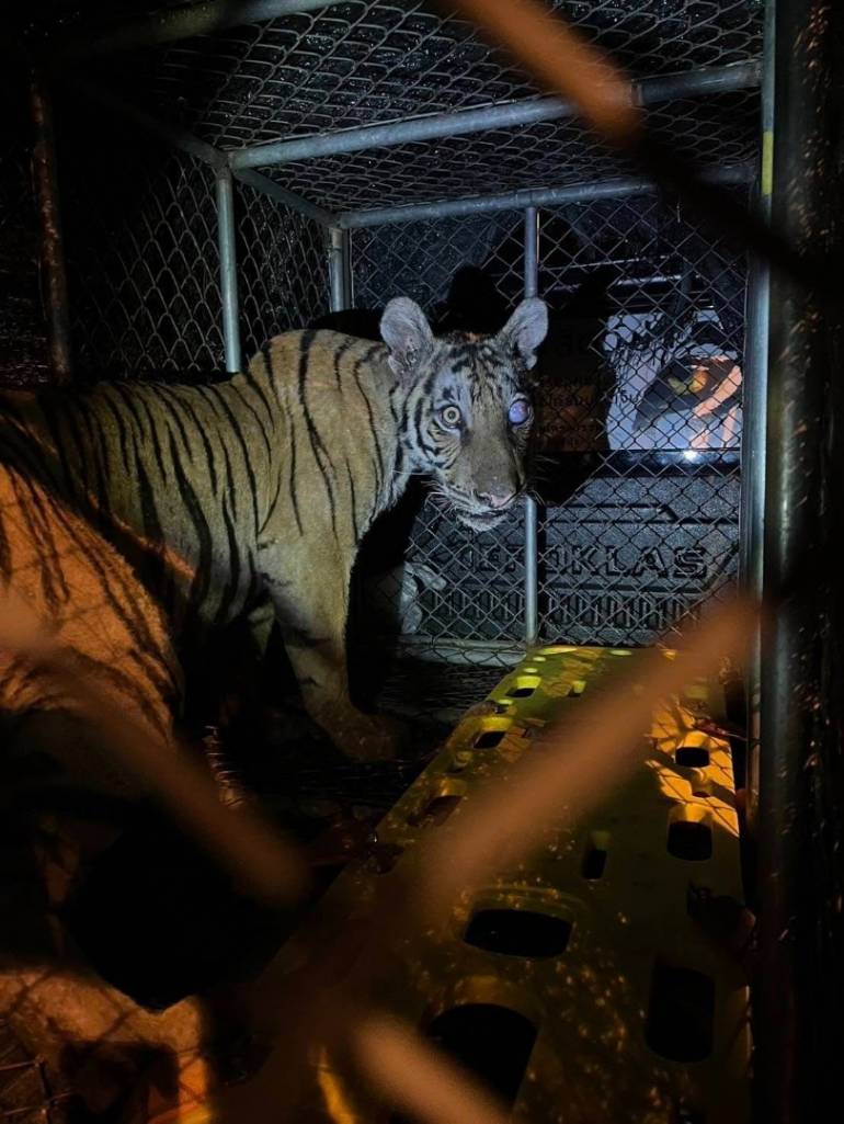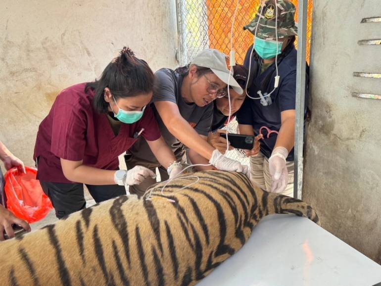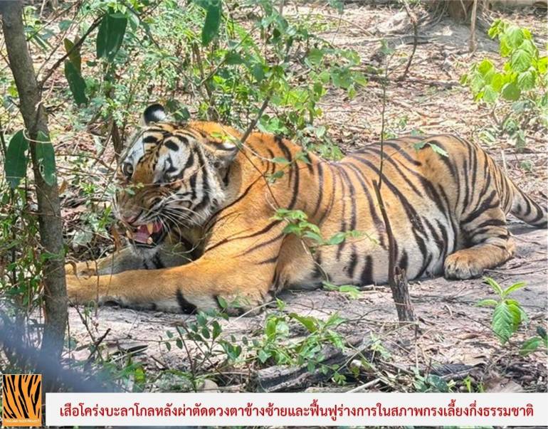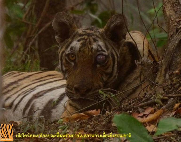 จากเสือโคร่งซูบผอมที่แยกตัวออกจากแม่ด้วยวัยเพียง 2 ปี เข้าไปเดินในหมู่บ้านกระเหรี่ยงน้ำตก อ.คลองลาน จ.กำแพงเพชร เมื่อช่วงกลางเดือน ก.พ.2567 ทำให้เจ้าหน้าที่ นักวิจัย และทีมสัตวแพทย์ ต้องวางแผนดักจับก่อนนำมาพักฟื้นที่สถานีเพาะเลี้ยงสัตว์ป่าห้วยขาแข้ง จ.อุทัยธานี พบว่าเสือโคร่งมีดวงตาข้างซ้ายอักเสบและปูดโปน