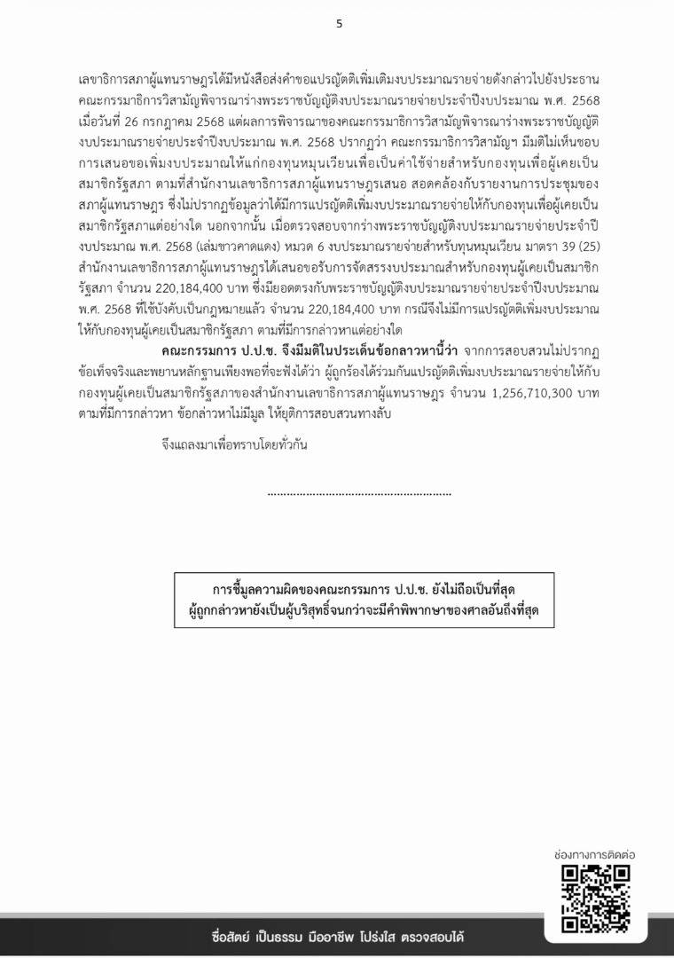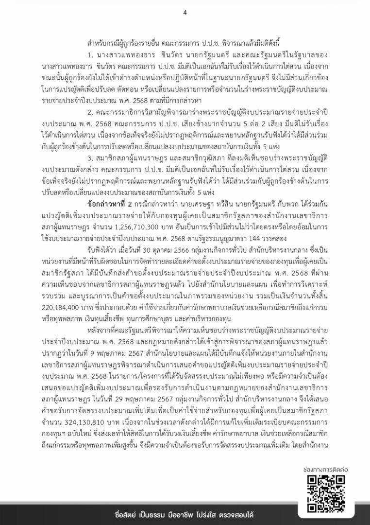 2.คณะกรรมาธิการวิสามัญพิจารณาร่าง พ.ร.บ.งบประมาณฯ ปี 2568 ป.ป.ช. เสียงข้างมาก 5 ต่อ 2 ไม่รับเรื่องไว้ไต่สวน เนื่องจากข้อเท็จจริงยังไม่ปรากฏพฤติการณ์หรือพยานหลักฐานชัดเจน