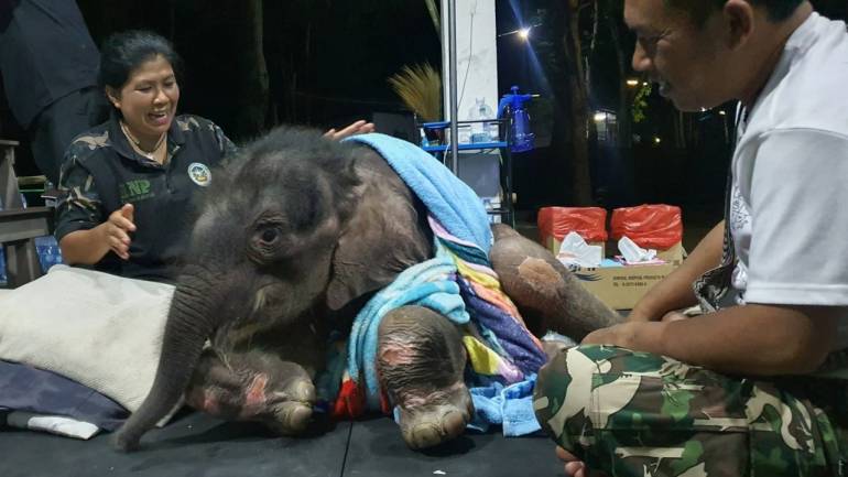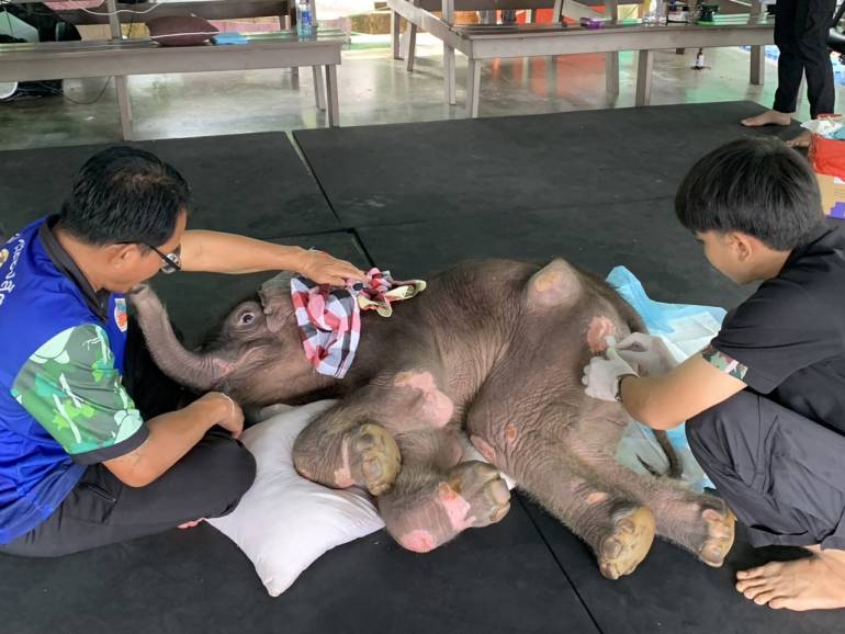 ทีมสัตวแพทย์ให้สเต็มเซลล์ รักษาลูกช้างป่า “ข้าวต้ม”