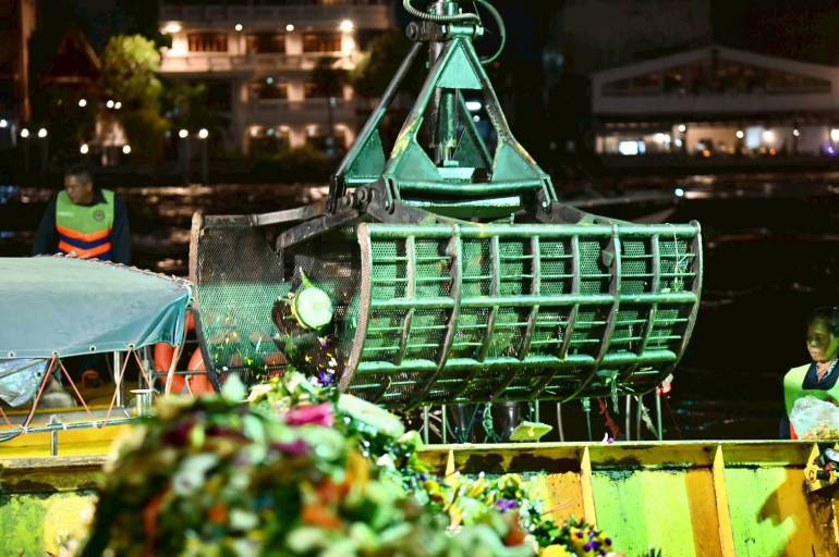 ในส่วนของแม่น้ำเจ้าพระยา ตั้งแต่สะพานพระราม 8 ถึงสะพานพระราม 9 ระยะทางประมาณ 15 กิโลเมตร กรุงเทพมหานครได้จัดเจ้าหน้าที่ 163 คน เรือเก็บขยะ 28 ลำ เรือสนับสนุนอีก 6 ลำ รวม 34 ลำ และรถบรรทุก 8 คัน ปฏิบัติงานต่อเนื่องจนถึงเวลา 05.00 น.ของวันนี้