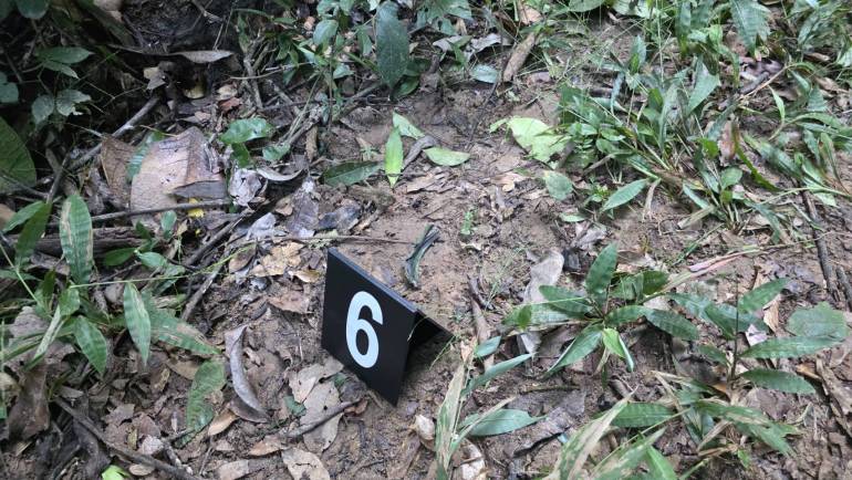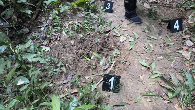 2. ชิ้นส่วนทุ่นระเบิด PMN-2 อยู่ภายในหลุมและพื้นที่ใกล้เคียง