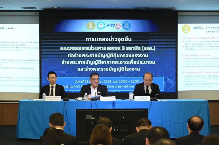 วันนี้ (12 พ.ย. 2568) นายพจน์ อร่ามวัฒนานนท์ ประธานกรรมการ สภาหอการค้าแห่งประเทศไทย ในฐานะประธานคณะกรรมการร่วมภาคเอกชน 3 สถาบัน (กกร) เปิดเผยว่า กกร. ได้รับข้อร้องเรียน และความกังวลจากสมาชิกทั่วประเทศ ทั้งจากหอการค้าจังหวัดมากกว่า 70 จังหวัดทั่วประเทศ สภาอุตสาหกรรมจังหวัด กลุ่มอุตสาหกรรมต่าง ๆ สมาคมการค้ามากกว่า 90 สมาคม และหอการค้าต่างประเทศอีกจำนวนหนึ่ง ที่ไม่เห็นด้วยและคัดค้านกับร่างกฎหมายดังกล่าว