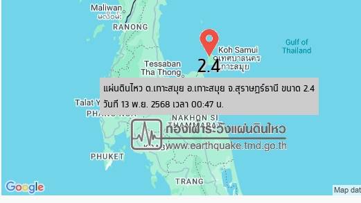 ล่าสุด วันนี้ (13 พ.ย.2568) นายอรรษิษฐ์ สัมพันธรัตน์ ปลัดกระทรวงมหาดไทย ได้รับรายงานจากผู้ว่าราชการจังหวัดสุราษฎร์ธานี ภายหลังจากการติดตามสถานการณ์จากเหตุแผ่นดินไหวดังกล่าว