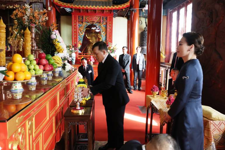 ในการนี้ เสด็จพระราชดำเนินไปยังวิหารหยวนทง ทรงพระดำเนินเวียนขวาไปทรงสักการะพระพุทธรูปพระศากยมุนี พระบาทสมเด็จพระเจ้าอยู่หัว ถวายต้นไม้ทอง ต้นไม้เงิน และดอกไม้ธูปเทียนแพ บนโต๊ะหน้าแท่นบูชาพระพุทธรูปพระศากยมุนี