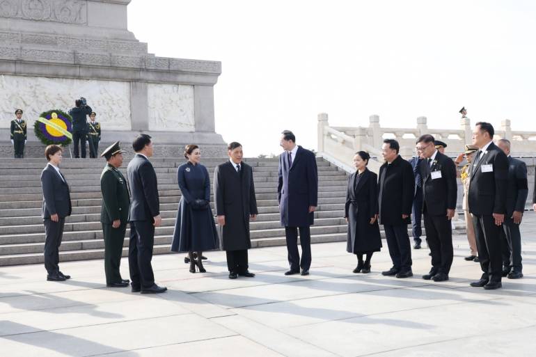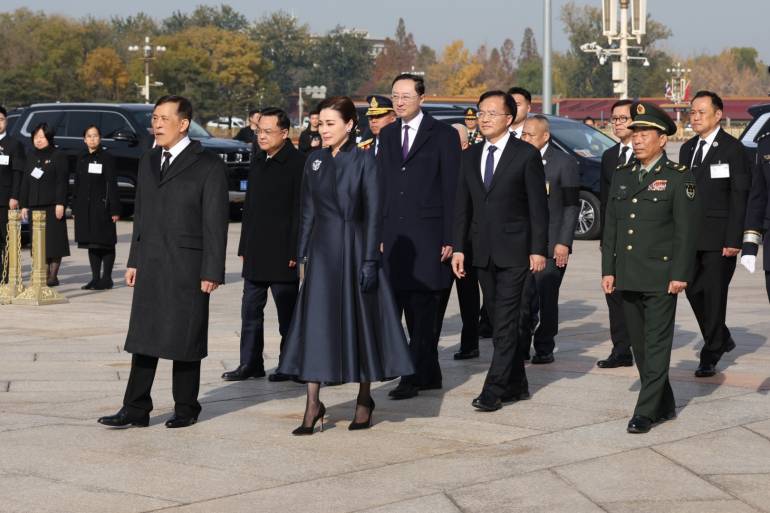 วันที่ 15 พ.ย.2568 เวลา 10.15 น. ตามเวลาท้องถิ่นของสาธารณรัฐประชาชนจีน ซึ่งเร็วกว่าประเทศไทย 1 ชั่วโมง พระบาทสมเด็จพระเจ้าอยู่หัว และสมเด็จพระนางเจ้า ฯ พระบรมราชินี เสด็จพระราชดำเนินไปยังอนุสาวรีย์วีรชน จตุรัสเทียนอันเหมิน